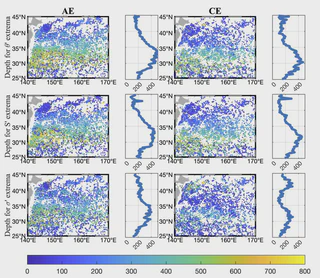 Image credit: Hengkai YaoAs a ubiquitous motion phenomenon in the ocean, mesoscale eddies play a key role in the transport and distribution of global heat, salinity, energy and marine biochemical processes. The Kuroshio-Oyashio extension region is one of the regions with most abundant eddy activities in the global ocean, and it is also a hot spot for air-sea interaction in the mid-latitudes. As the intersection of the subtropical circulation and the subpolar circulation in the North Pacific, this sea area has complex ocean fronts and large-scale circulation systems, resulting in rich and diverse mesoscale eddy phenomena. The study of mesoscale eddies in the Kuroshio-Oyashio extension region is of great significance for understanding the contribution of oceanic mesoscale phenomena in mid-latitude air-sea interactions and global multi-scale energy balance. Based on satellite observations, in situ observations of Argo profiles, and reanalysis data, this dissertation systematically studies the surface features, vertical structures and sources of the mesoscale eddies in the Kuroshio-Oyashio extension ocean.